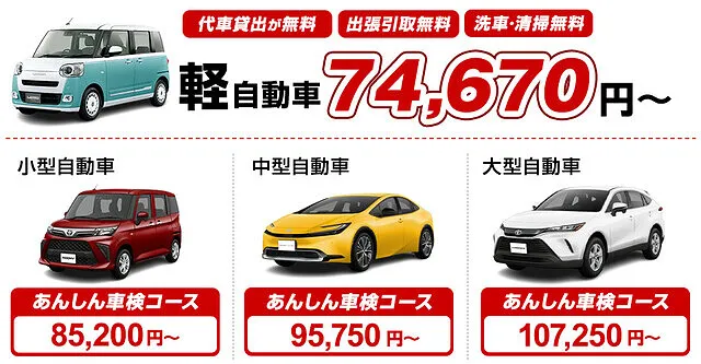 | 車検総額 | ¥74,670 | ¥85,200 | ¥95,750 | ¥107,250 | ¥110,450 |