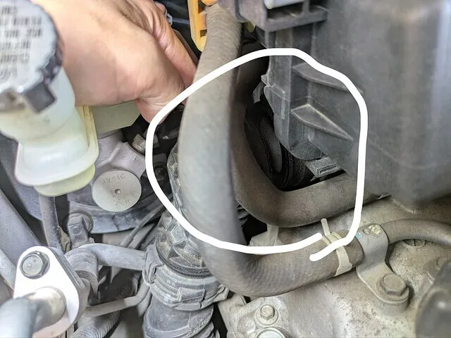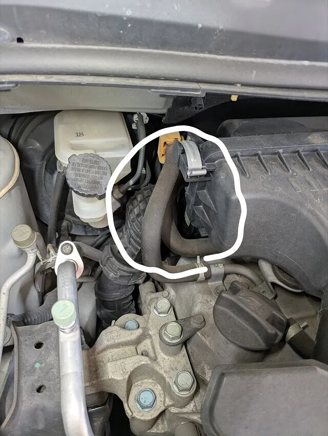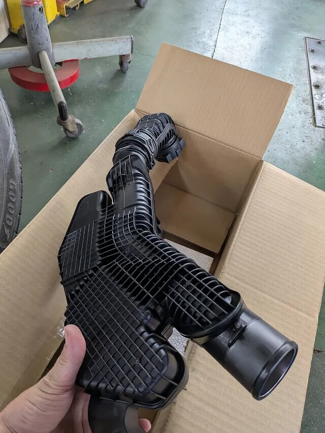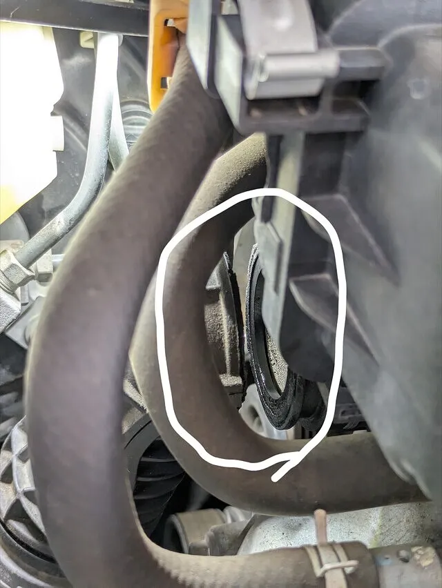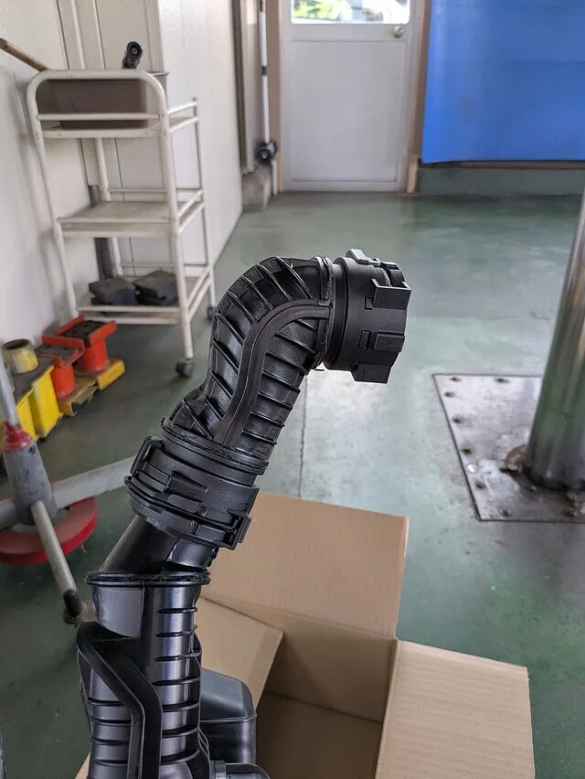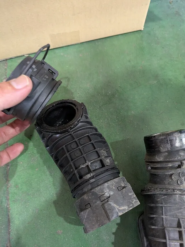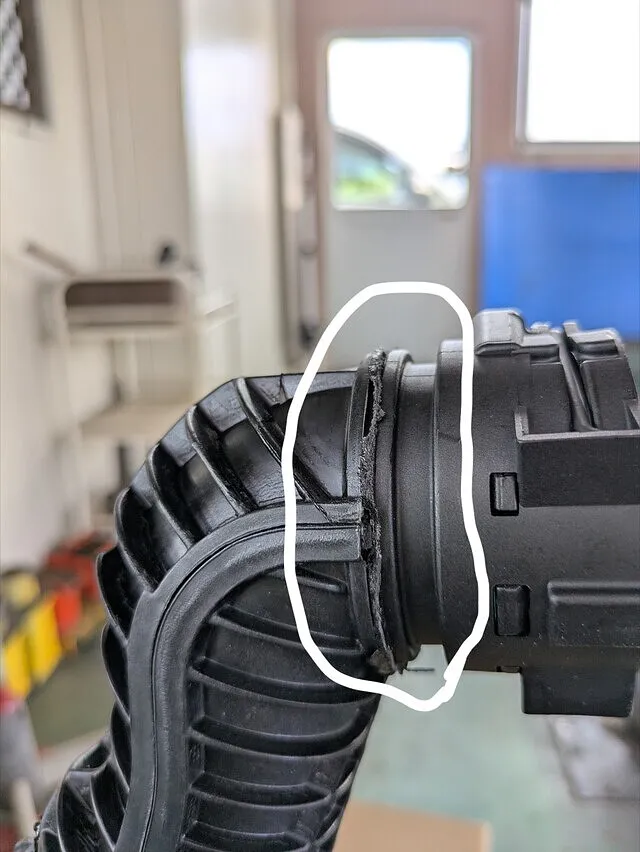 わかりにくいかと思いますが、本来繋がっているはずの吸気ダクトが全く繋がっておらず隙間が空いているのがわかるかと思います。