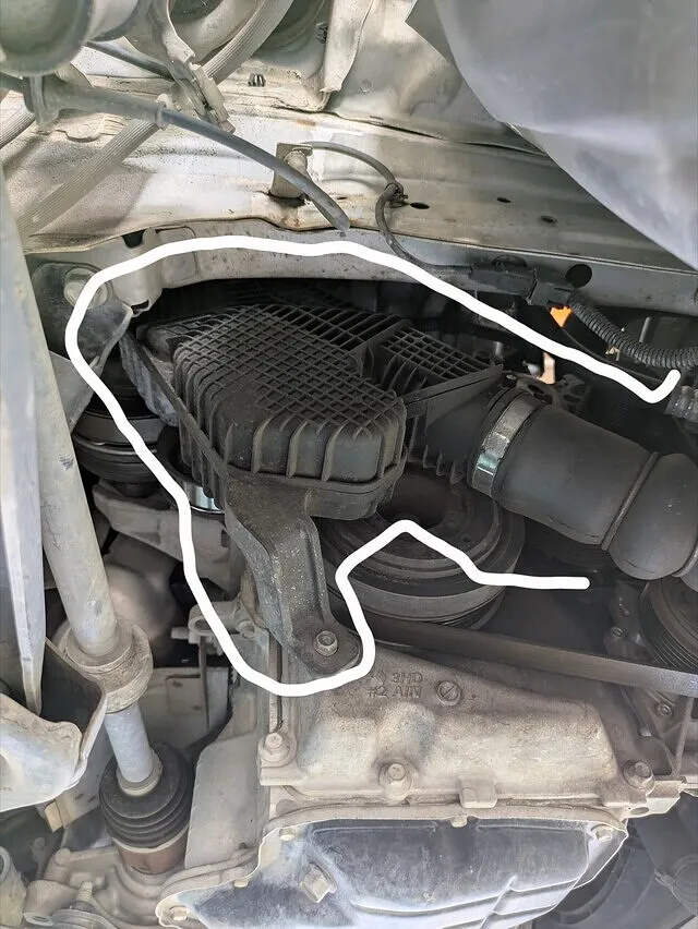 定期点検時などでファンベルトを取り外す際、こちらのダクトを取り外す必要があるので