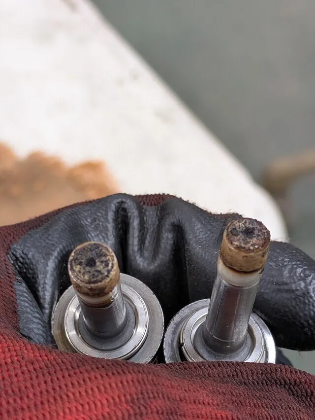 今回不具合を起こしたのは4番シリンダーですが、不具合を起こしていない他のシリンダーのインジェクターと比べても見た目では何も分からないです。